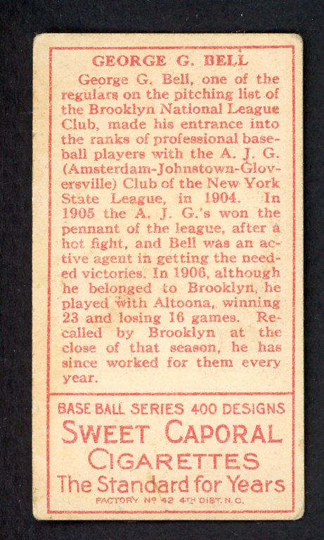 1911 T205 T 205 George Bell Dodgers VG 548379