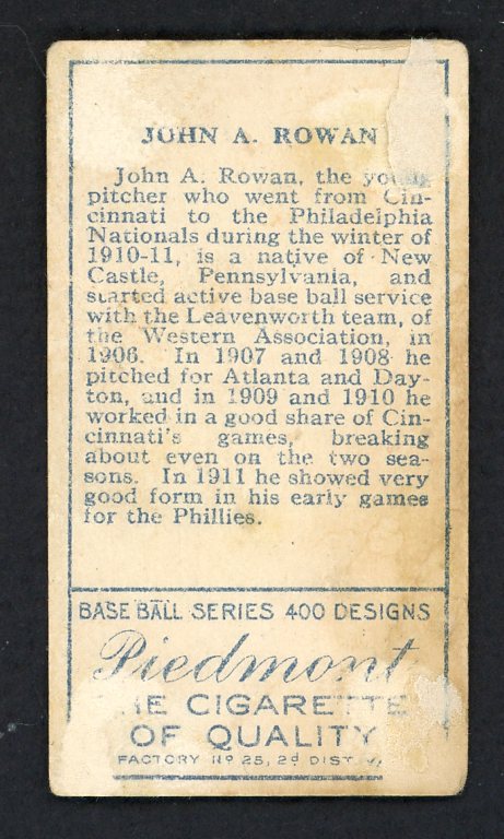 1911 T205 T 205 Jack Rowan Phillies GD-VG back damage 548425