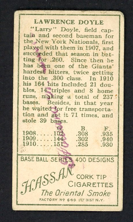 1911 T205 T 205 Larry Doyle Giants VG ink stamp back 548392