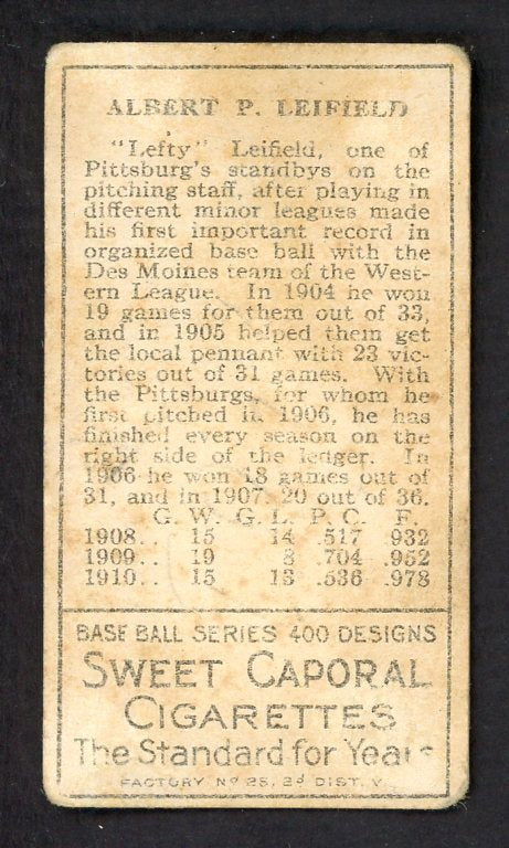 1911 T205 T 205 Lefty Leifield Pirates GD-VG 548407