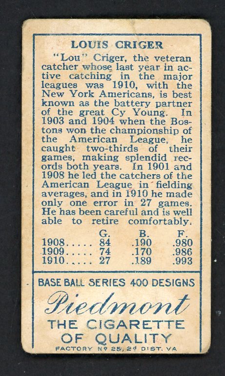1911 T205 T 205 Lou Criger Yankees VG 548385