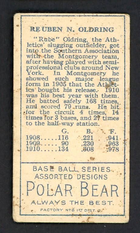 1911 T205 T 205 Rube Oldring A's VG 548418
