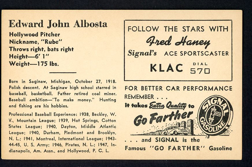 1947 Signal Oil Ed Albosta Hollywood EX 537081