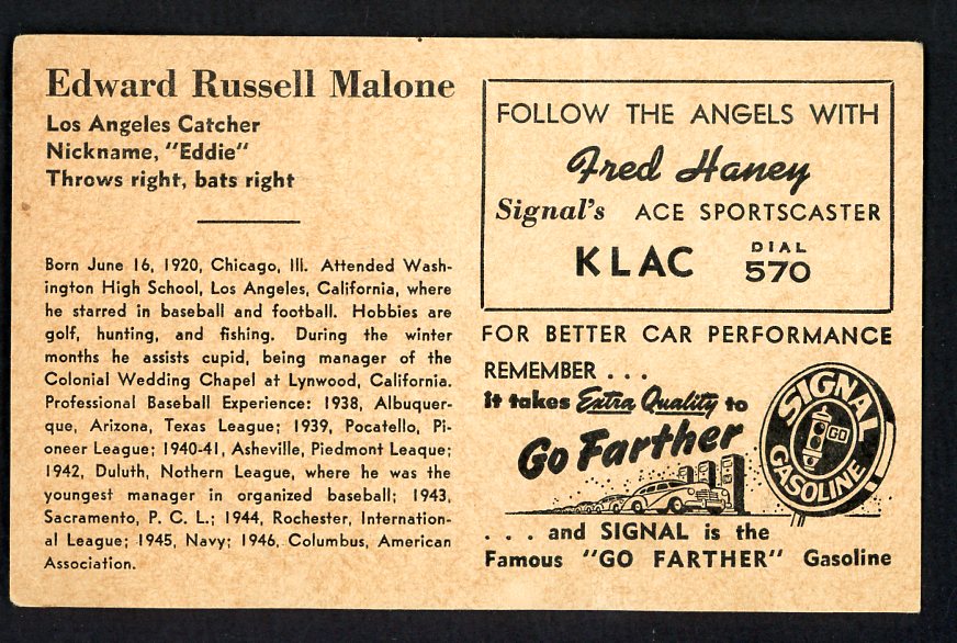1947 Signal Oil Eddie Malone Los Angeles VG-EX 537113