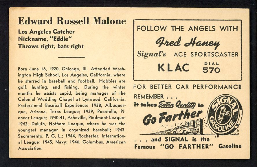 1947 Signal Oil Eddie Malone Los Angeles VG-EX 537114