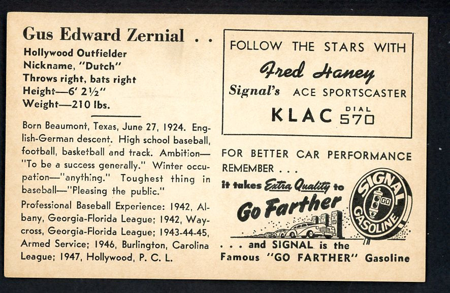 1947 Signal Oil Gus Zernial Hollywood EX 537136