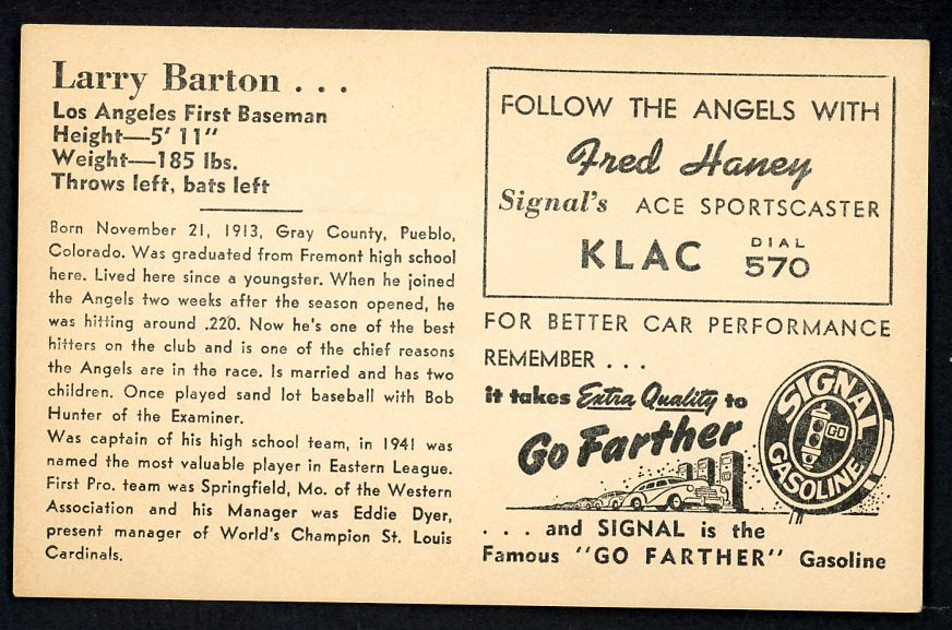 1947 Signal Oil Larry Barton Los Angeles VG-EX 537084