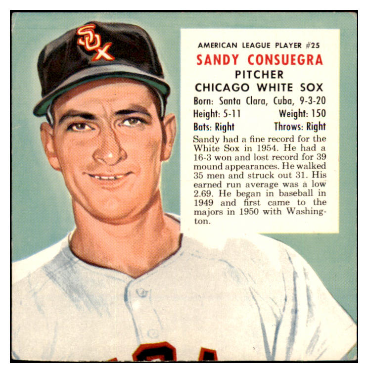 1955 Red Man #025AL Sandy Consuegra White Sox EX No Tab 494816