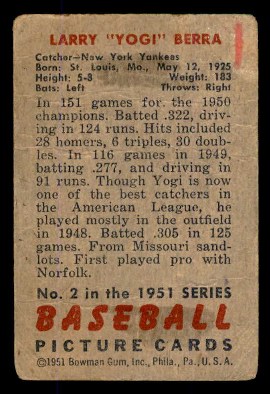 1951 Bowman Baseball #002 Yogi Berra Yankees PR-FR 545903