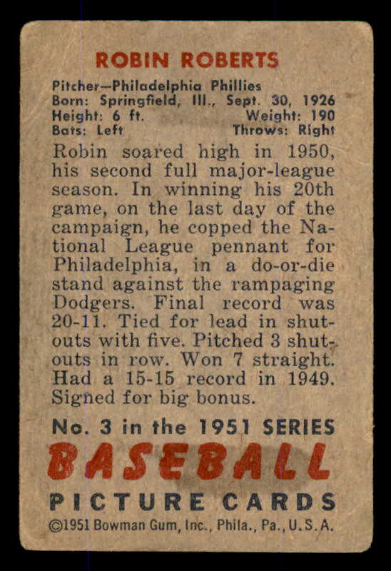 1951 Bowman Baseball #003 Robin Roberts Phillies GD-VG 545895