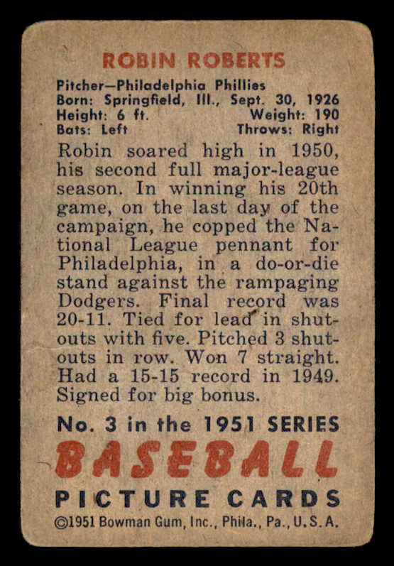 1951 Bowman Baseball #003 Robin Roberts Phillies VG 541893