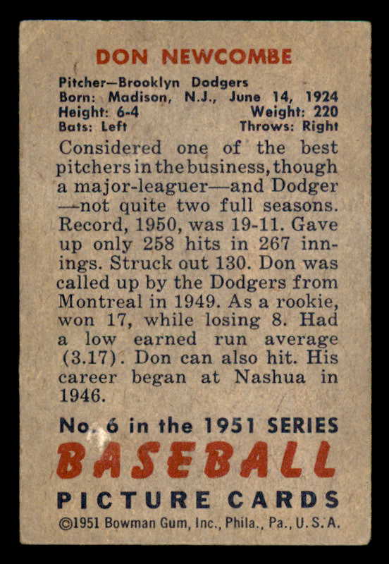 1951 Bowman Baseball #006 Don Newcombe Dodgers VG-EX 541888