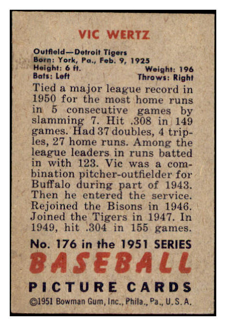 1951 Bowman Baseball #176 Vic Wertz Tigers EX-MT 531435