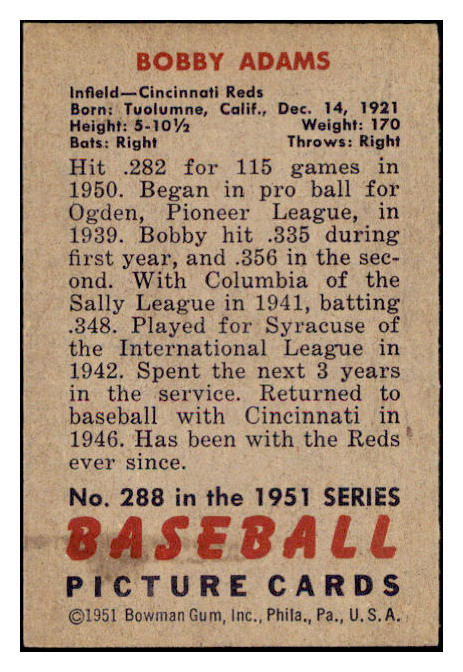 1951 Bowman Baseball #288 Bobby Adams Reds EX-MT 531367