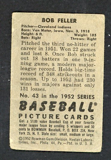 1952 Bowman Baseball #043 Bob Feller Indians Good 534654
