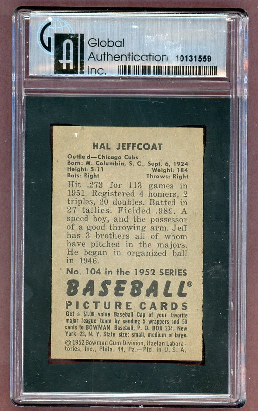 1952 Bowman Baseball #104 Hal Jeffcoat Cubs GAI 8 NM/MT 526116
