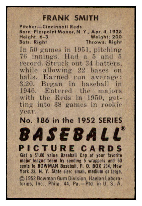 1952 Bowman Baseball #186 Frank Smith Reds EX-MT 531475