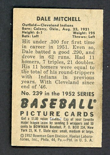1952 Bowman Baseball #239 Dale Mitchell Indians EX-MT 531501