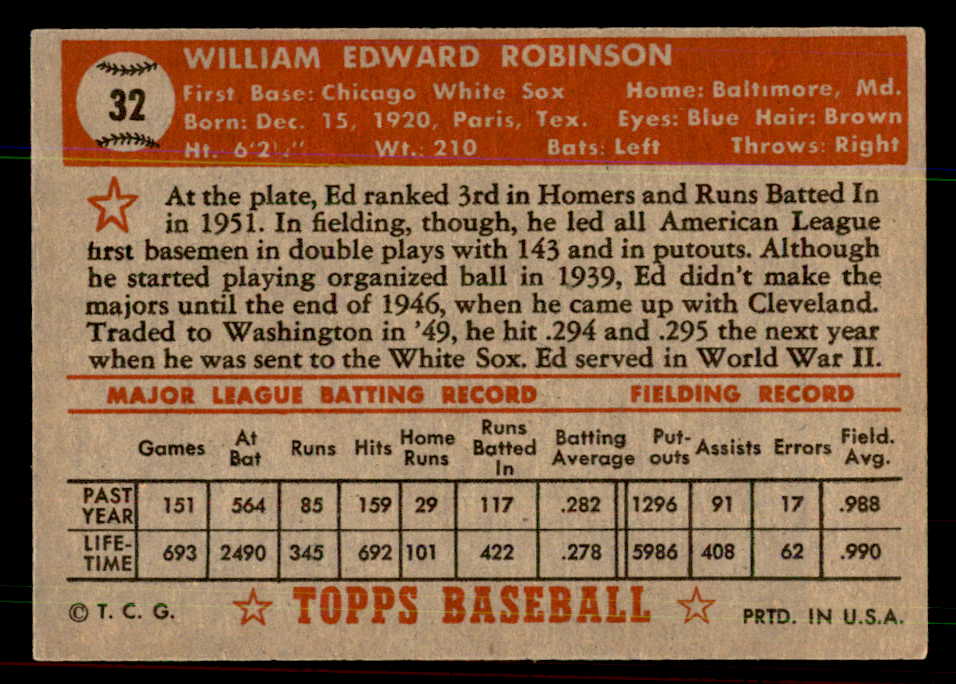 1952 Topps Baseball #032 Eddie Robinson White Sox VG-EX Red 544124