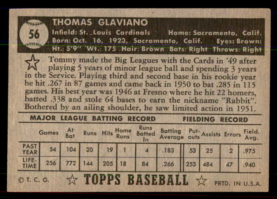 1952 Topps Baseball #056 Tommy Glaviano Cardinals EX-MT Black 544139