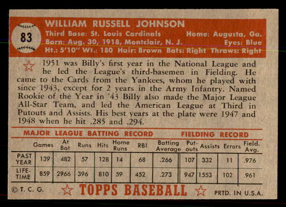 1952 Topps Baseball #083 Billy Johnson Cardinals EX-MT 544159