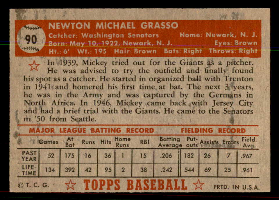 1952 Topps Baseball #090 Mickey Grasso Senators EX-MT 544165