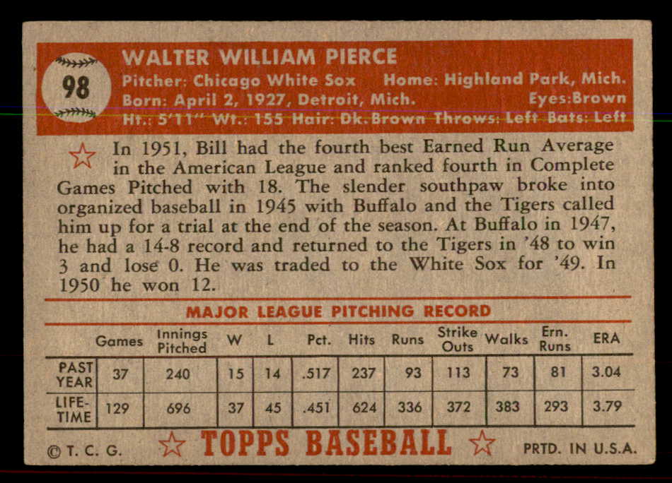 1952 Topps Baseball #098 Billy Pierce White Sox EX-MT 544173