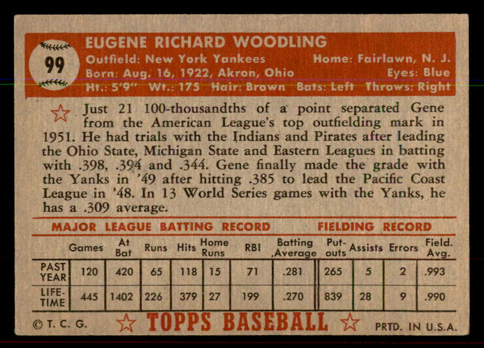1952 Topps Baseball #099 Gene Woodling Yankees EX-MT 544174