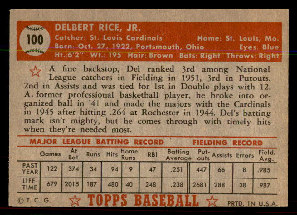 1952 Topps Baseball #100 Del Rice Cardinals EX-MT 544175