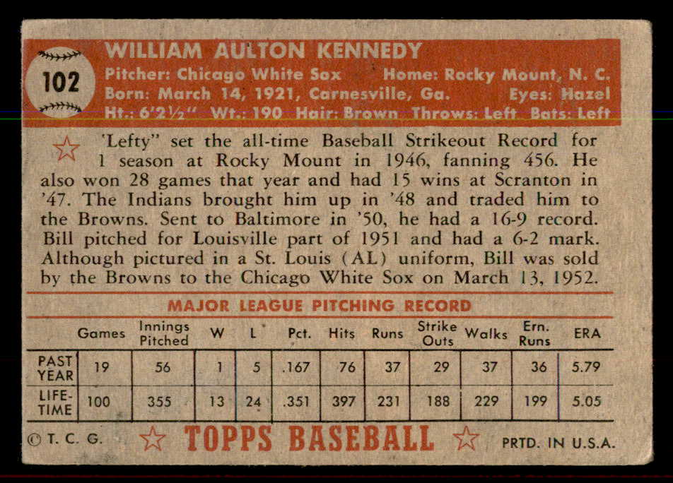 1952 Topps Baseball #102 Bill Kennedy Browns VG-EX 544177