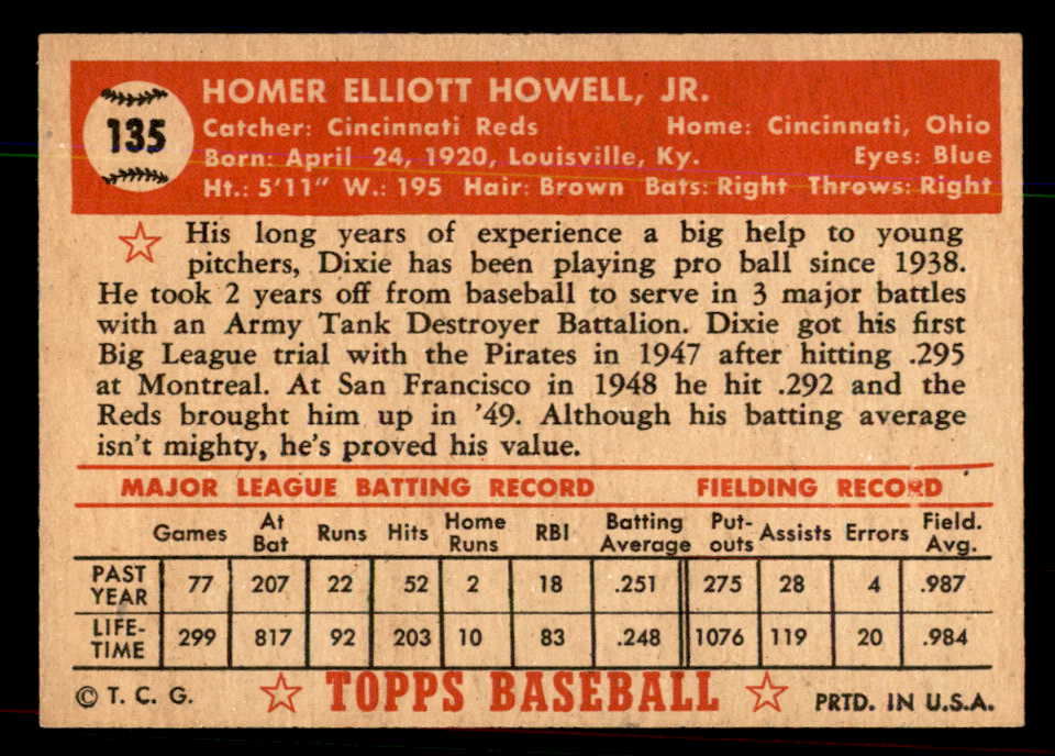 1952 Topps Baseball #135 Dixie Howell Reds EX-MT 544210