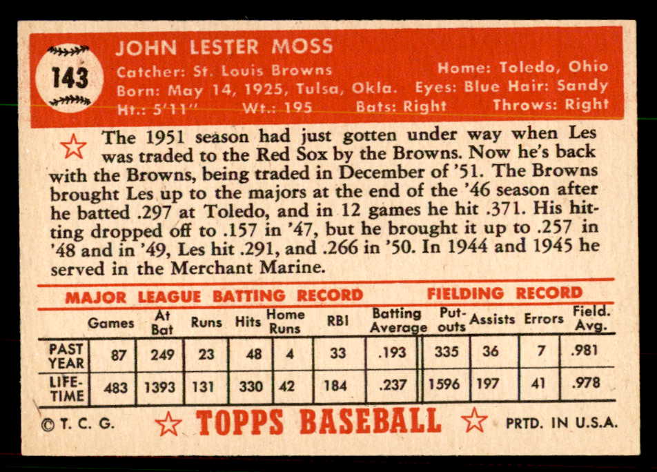 1952 Topps Baseball #143 Les Moss Browns EX-MT 544218
