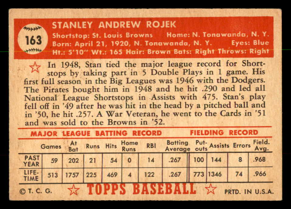 1952 Topps Baseball #163 Stan Rojek Browns EX+/EX-MT 544237
