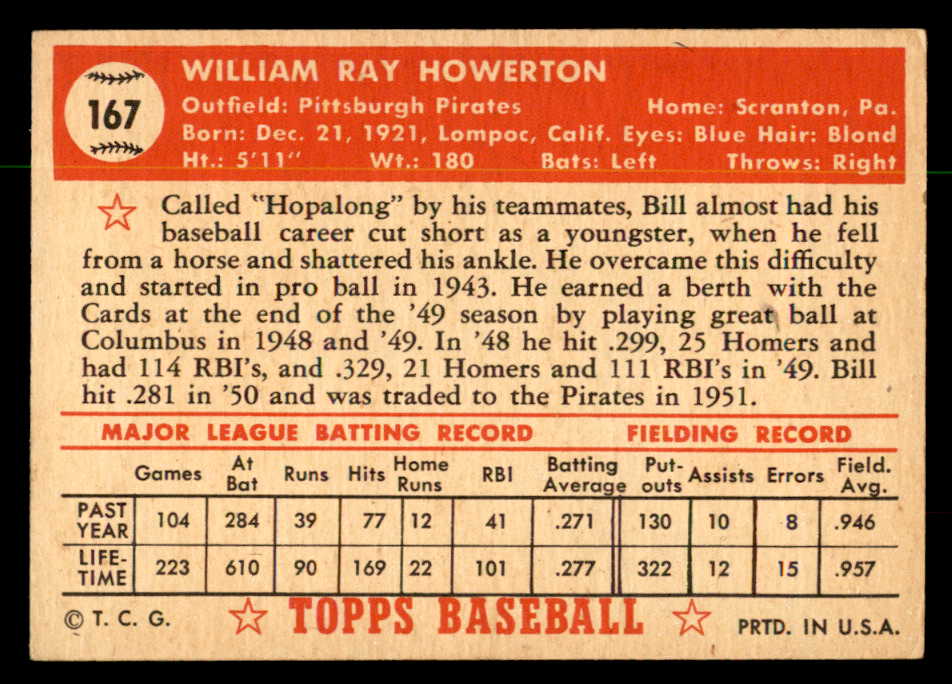 1952 Topps Baseball #167 Bill Howerton Pirates EX-MT 544241