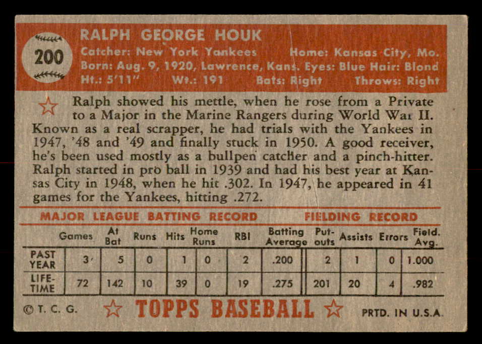 1952 Topps Baseball #200 Ralph Houk Yankees EX+/EX-MT 544272