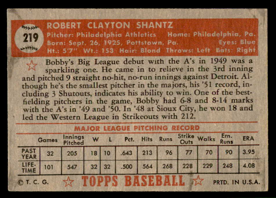 1952 Topps Baseball #219 Bobby Shantz A's EX-MT 544290