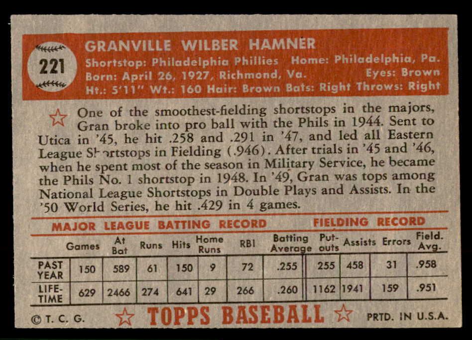 1952 Topps Baseball #221 Granny Hamner Phillies EX-MT 544292