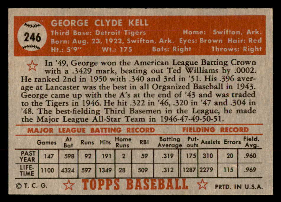 1952 Topps Baseball #246 George Kell Tigers EX-MT 544316