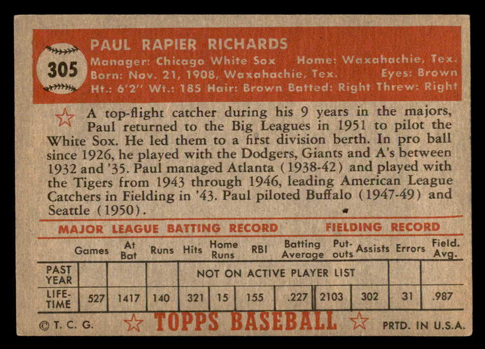 1952 Topps Baseball #305 Paul Richards White Sox EX-MT 544370