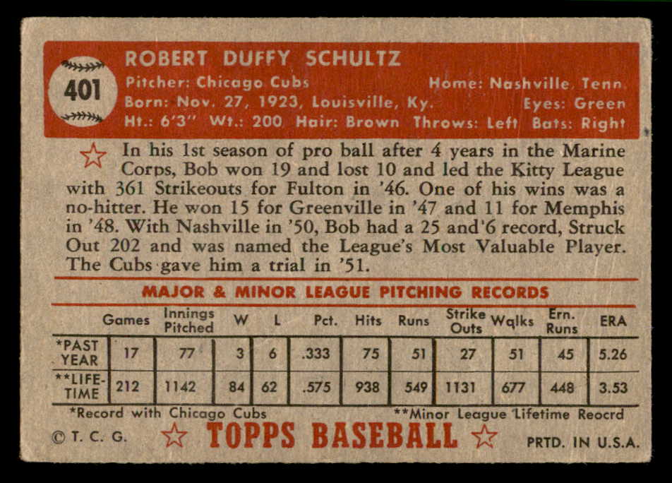 1952 Topps Baseball #401 Bob Schultz Cubs VG-EX 544400