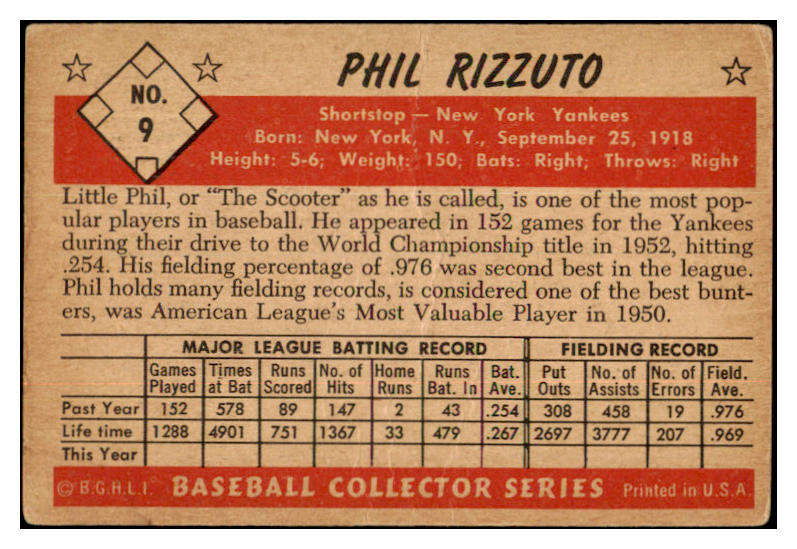 1953 Bowman Color Baseball #009 Phil Rizzuto Yankees GD-VG 532262