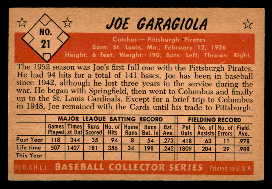 1953 Bowman Color Baseball #021 Joe Gargiola Pirates EX+/EX-MT 542016