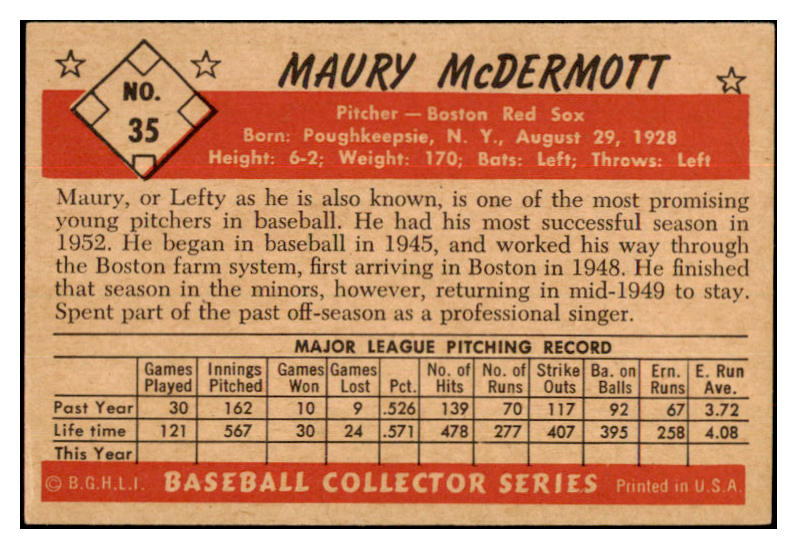 1953 Bowman Color Baseball #035 Maury McDermott Red Sox EX-MT 532266