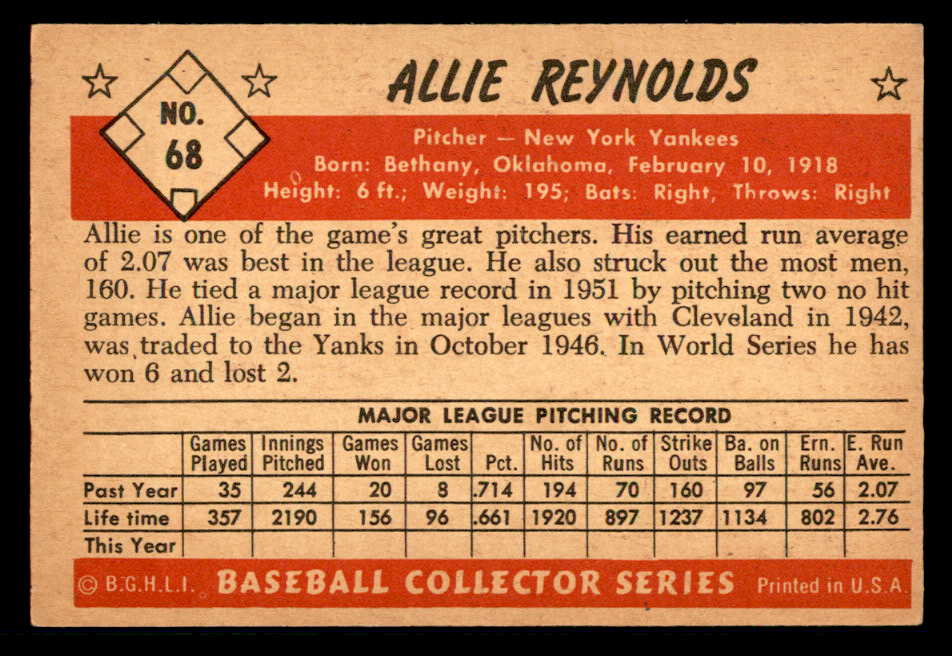 1953 Bowman Color Baseball #068 Allie Reynolds Yankees EX-MT 541996