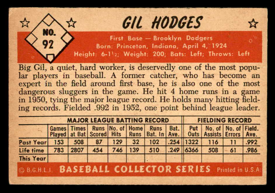 1953 Bowman Color Baseball #092 Gil Hodges Dodgers VG-EX 538451