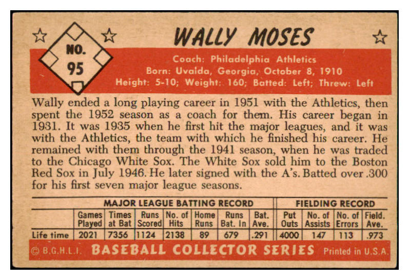 1953 Bowman Color Baseball #095 Wally Moses A's EX 451909
