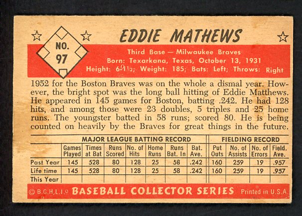 1953 Bowman Color Baseball #097 Eddie Mathews Braves EX 538561