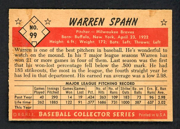 1953 Bowman Color Baseball #099 Warren Spahn Braves NR-MT 538554