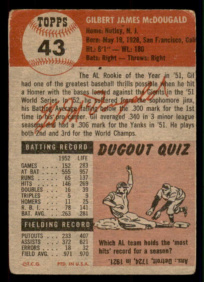 1953 Topps Baseball #043 Gil McDougald Yankees Good 546989