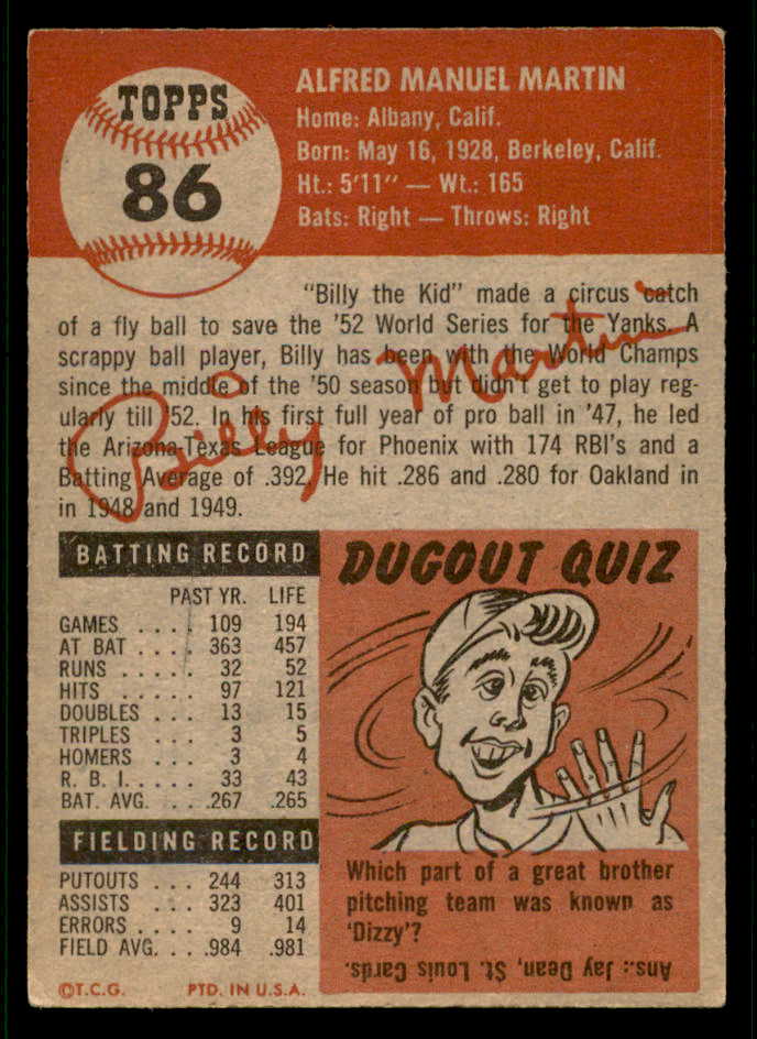 1953 Topps Baseball #086 Billy Martin Yankees EX 541833